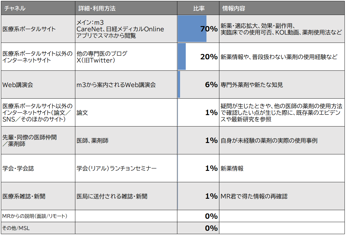 チャネル活用の実態:医療系ポータルサイト・医師ブログ・SNSが主役