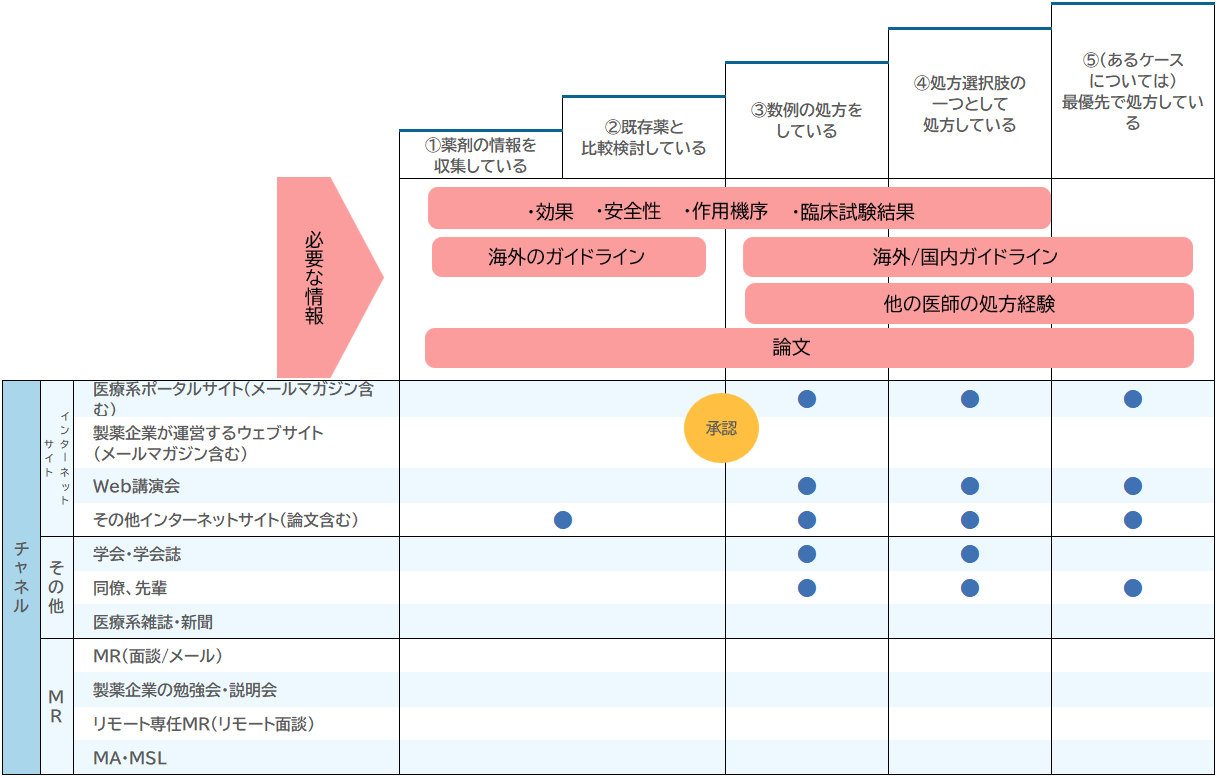 薬剤の情報収集や既存薬との比較検討段階では、効果・安全性・作用機序、臨床試験結果、海外ガイドラインなどの情報を主にインターネット経由で入手します。