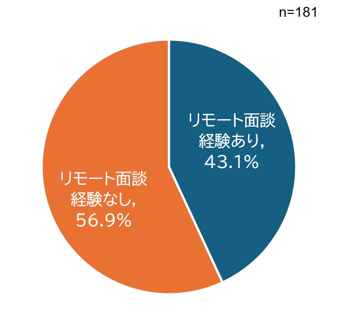 リモート面談経験ありの医師は43.1%、リモート面談経験なしの医師は56.9%でした。